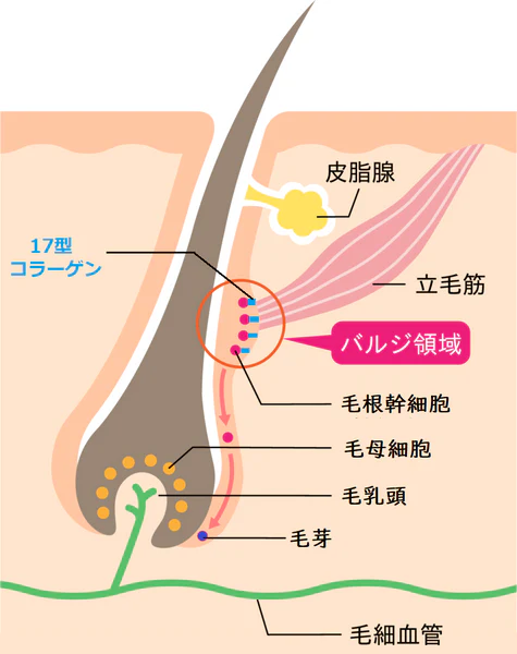 立毛筋と接する部分に「バルジ領域」があるのが分ると思います。